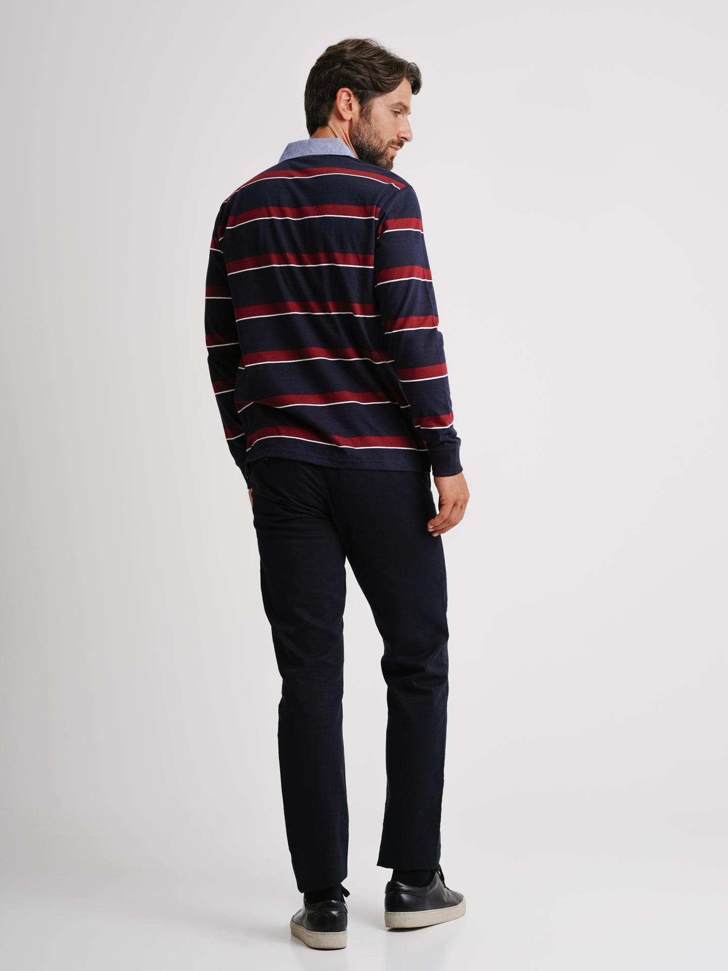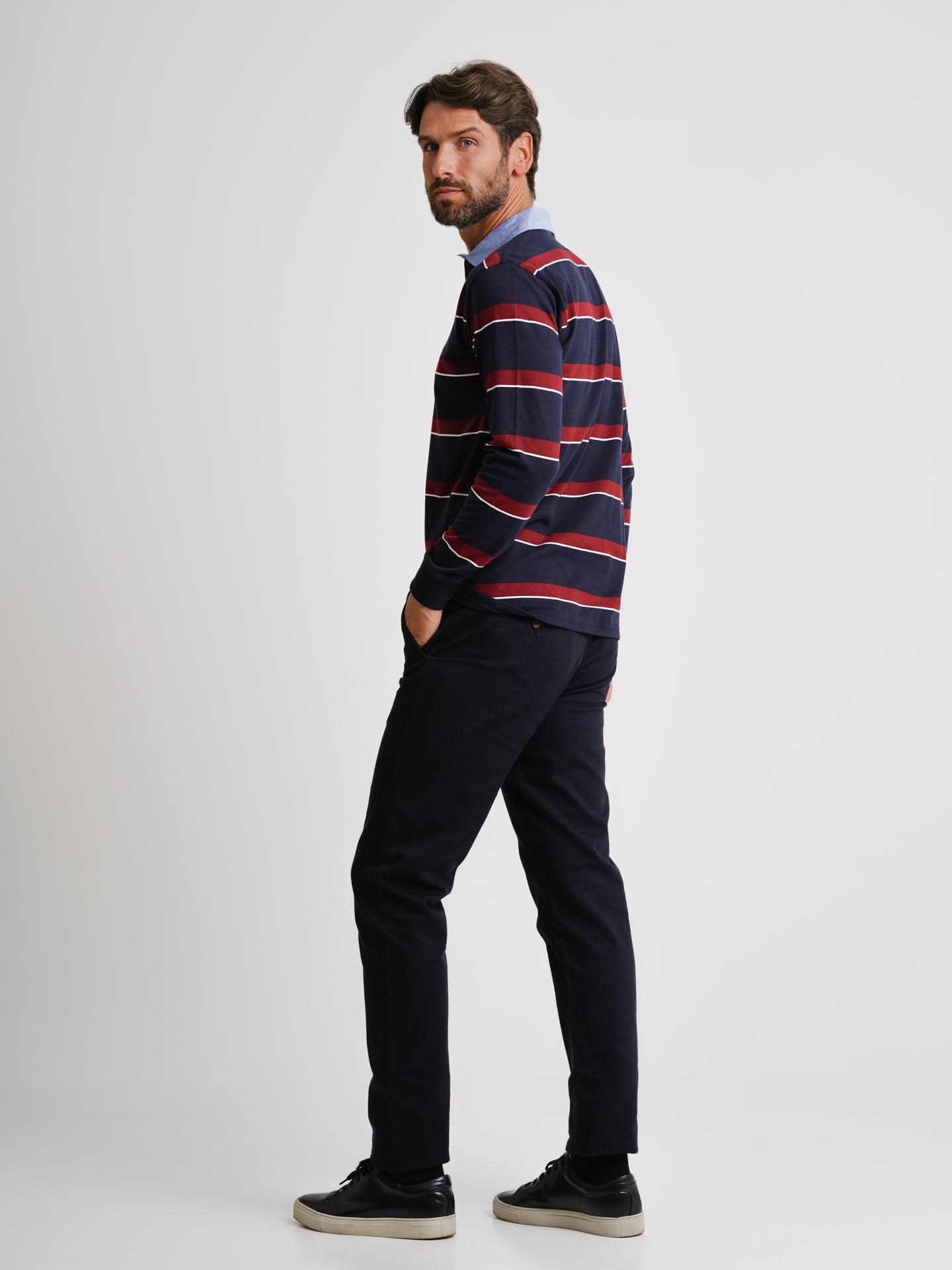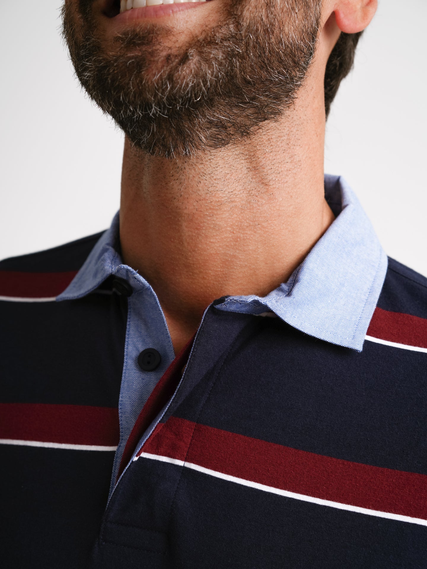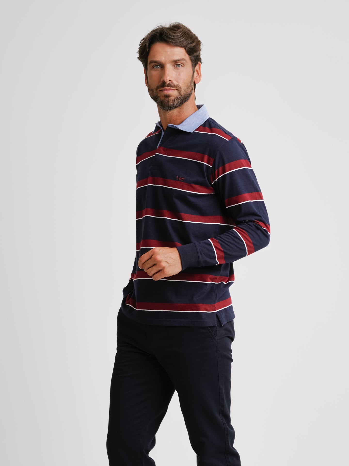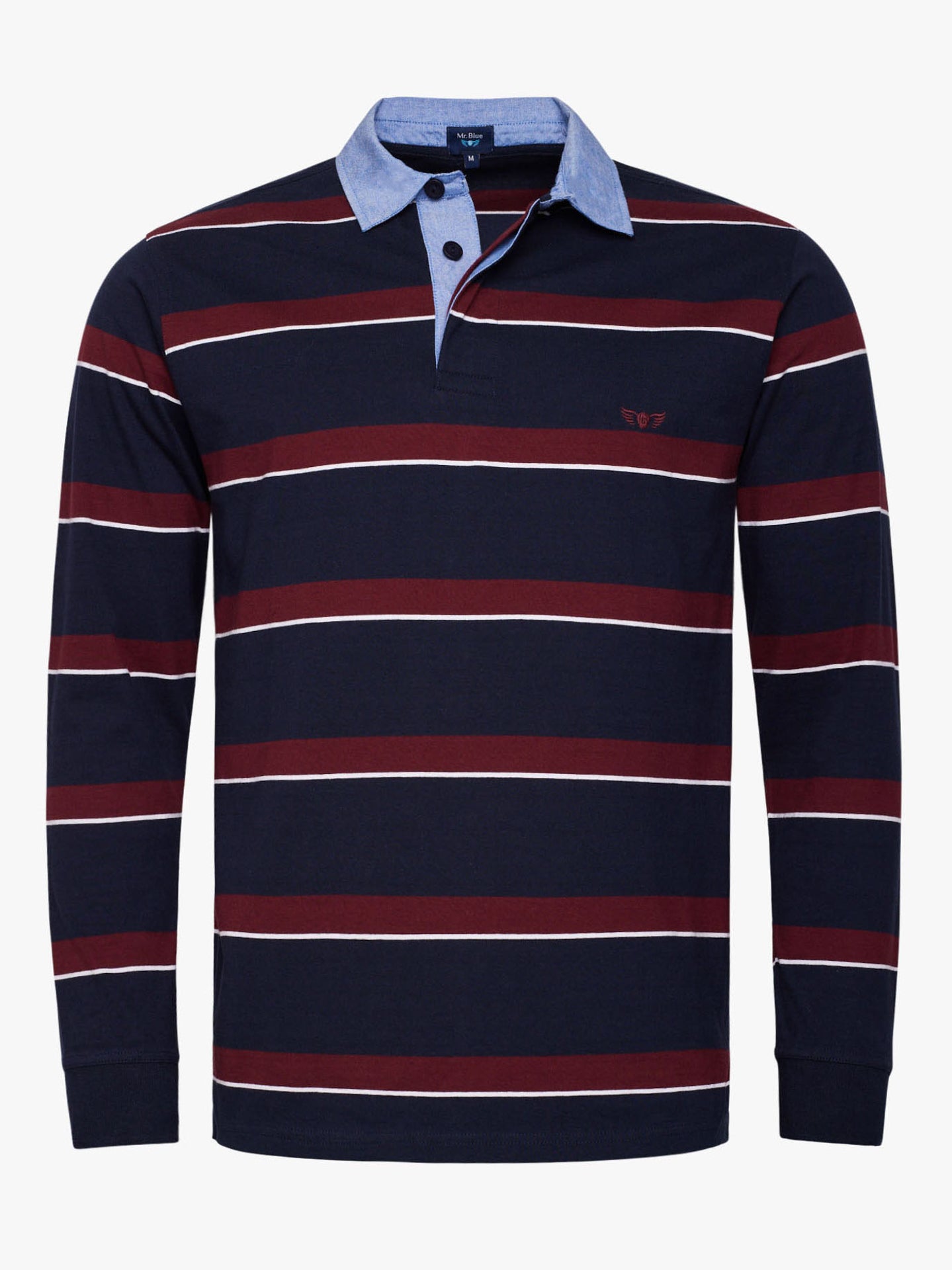 Rugbie Regular Fit Azul Algodão Riscas Com logo