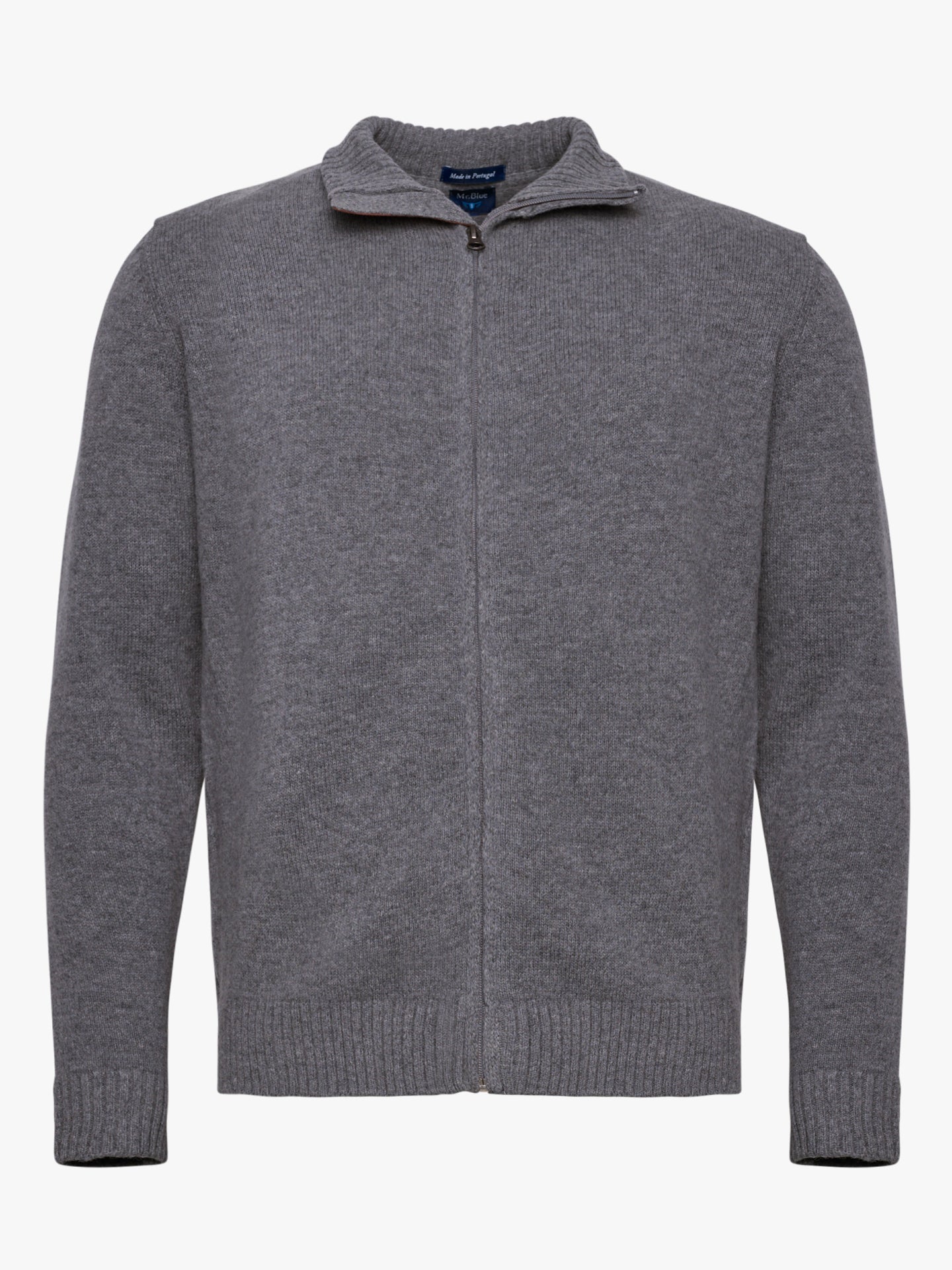 Pullover Lã Grosso Cinzento Liso Sem Logo e Sem Bolso