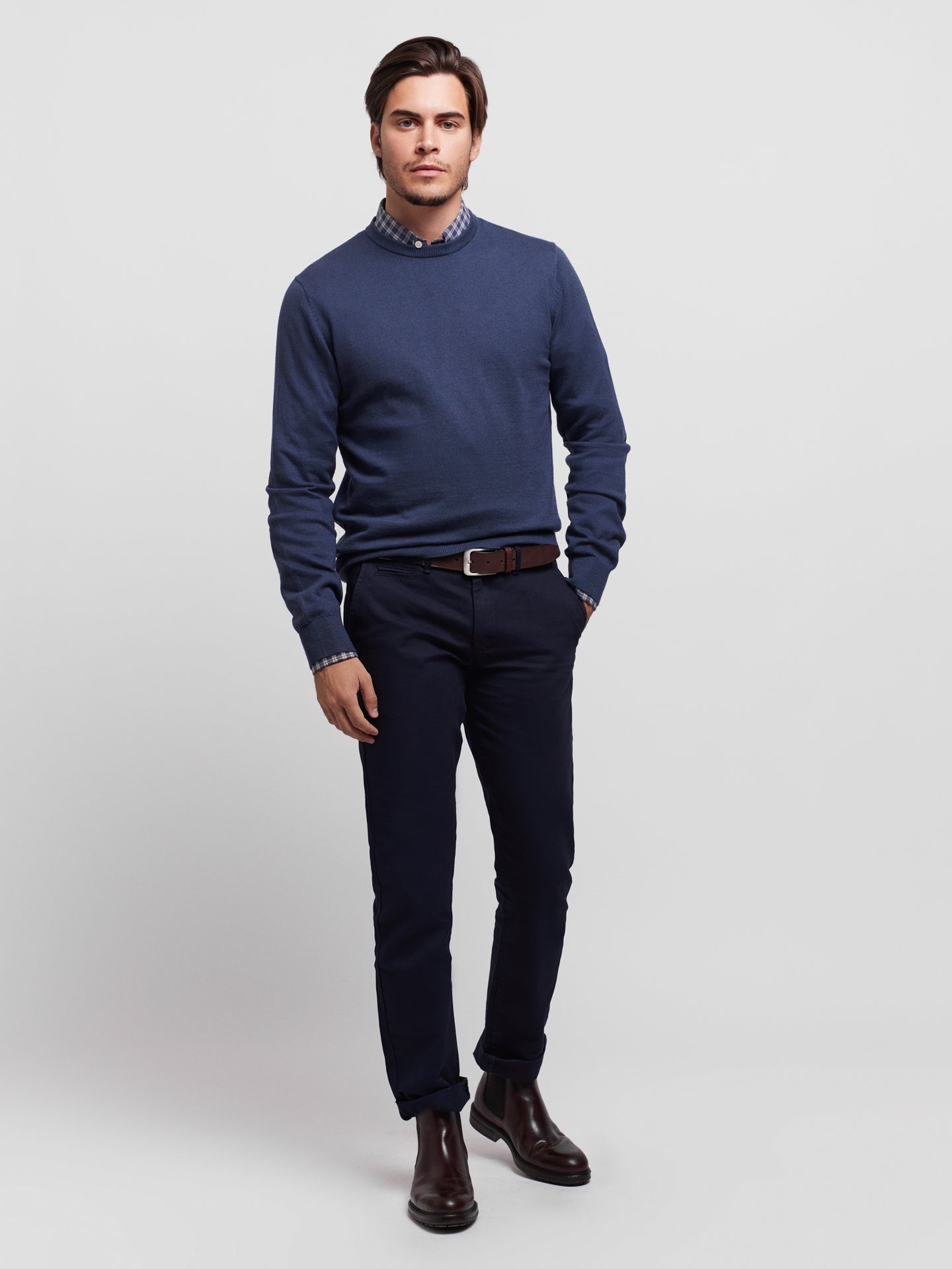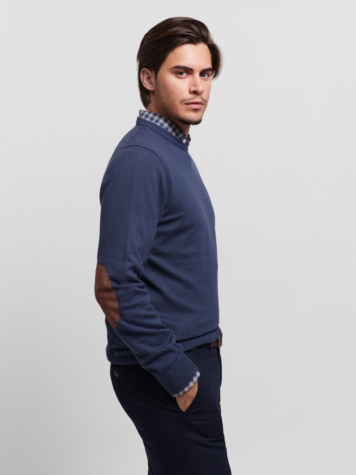 Pullover Regular Fit Azul Manga CompridaManga Comprida Liso
