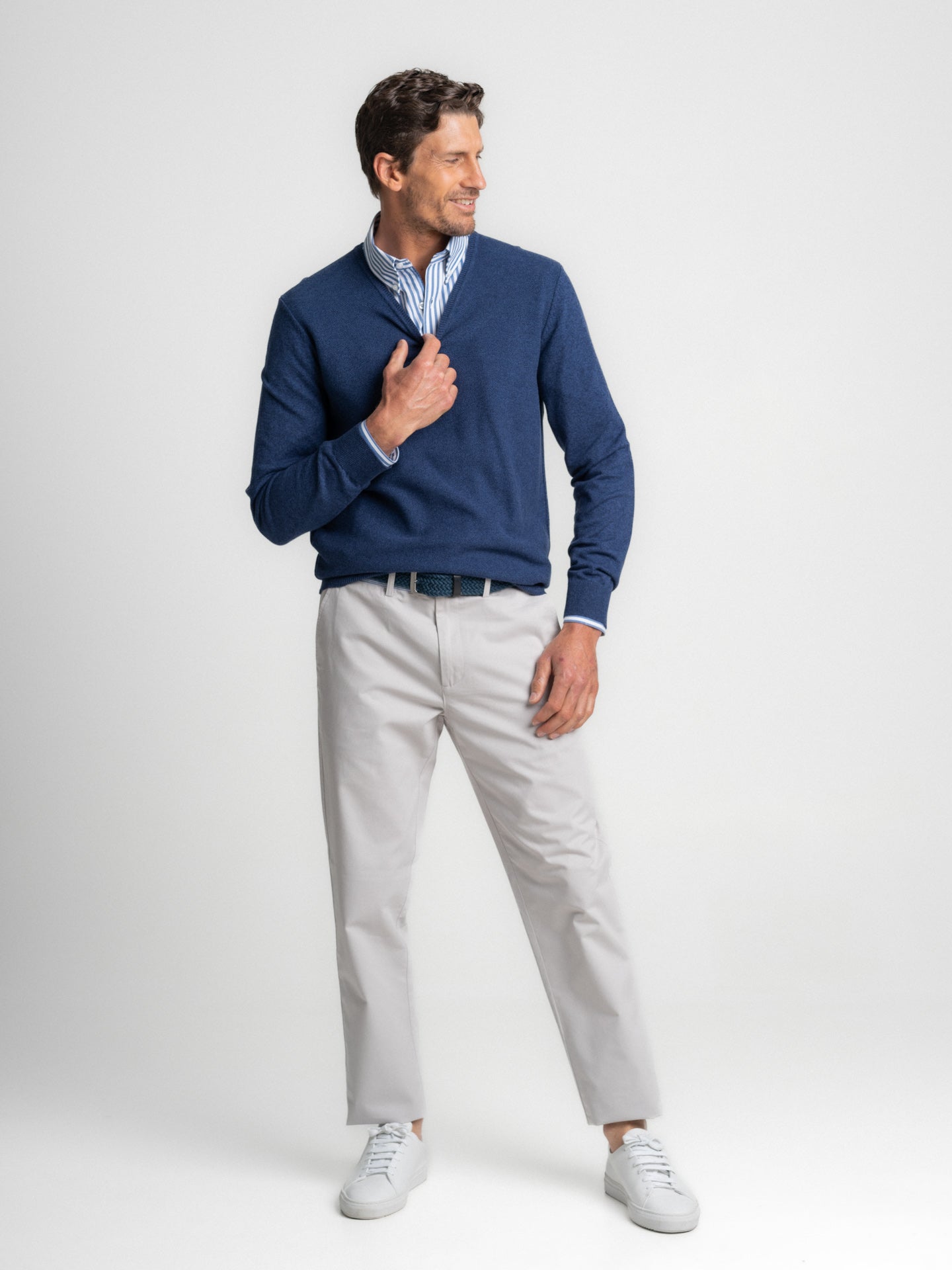 Camisola de Algodão e Caxemira Azul fina com Decote em V