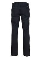 Calças chino para homem azul intermédio confecionadas em tecido algodão. Corte regular, fecho de botão e fecho de correr oculto por carcela, dois bolsos laterais, dois bolsos com casa de botão abotoados atrás e presilhas para cinto. Interior cós com padrã