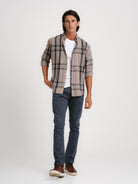 Camisa Regular Fit Flanela Cinzenta Algodão Quadrados