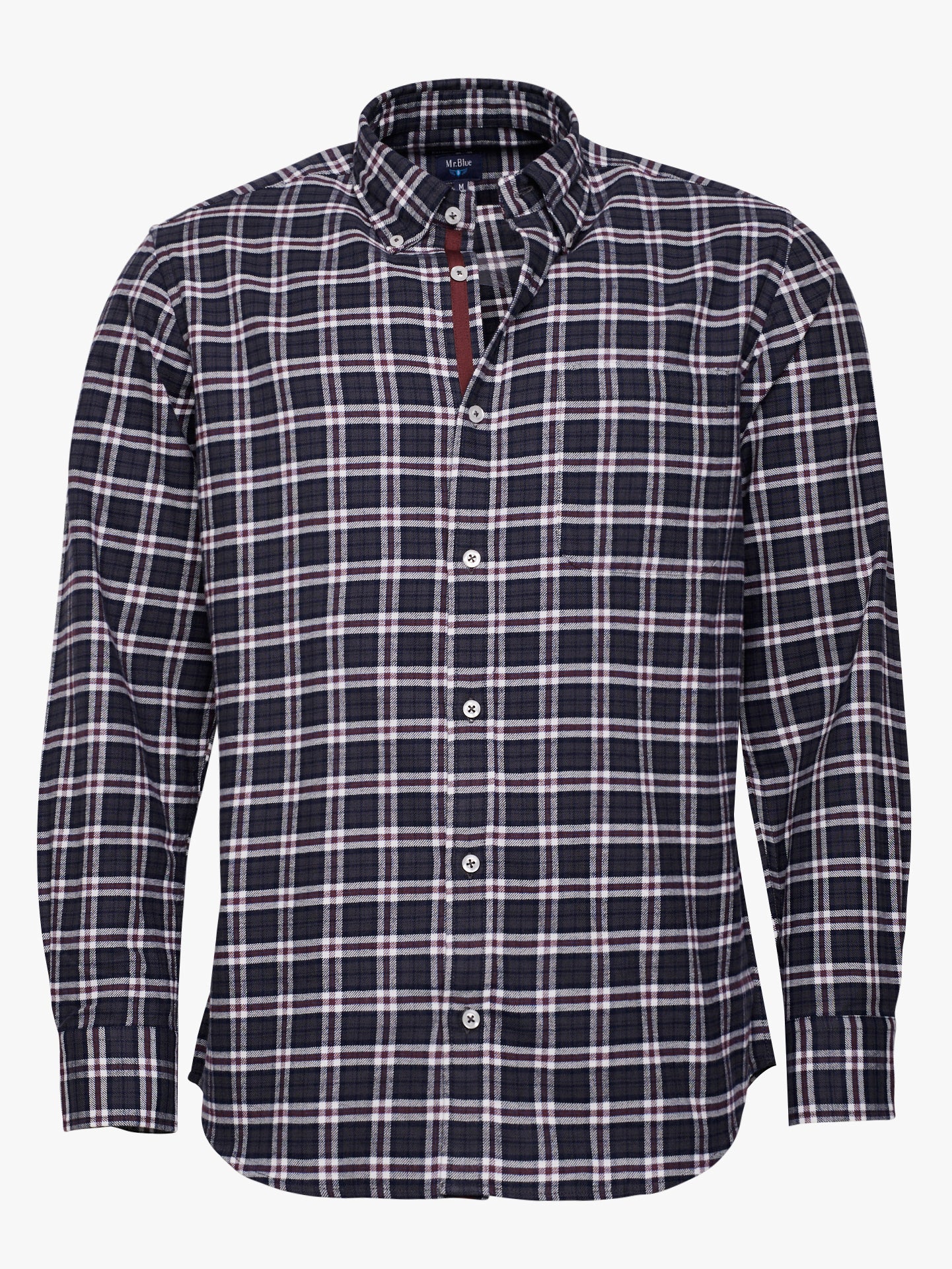Camisa Regular Fit Flanela Cinzenta Algodão Quadrados